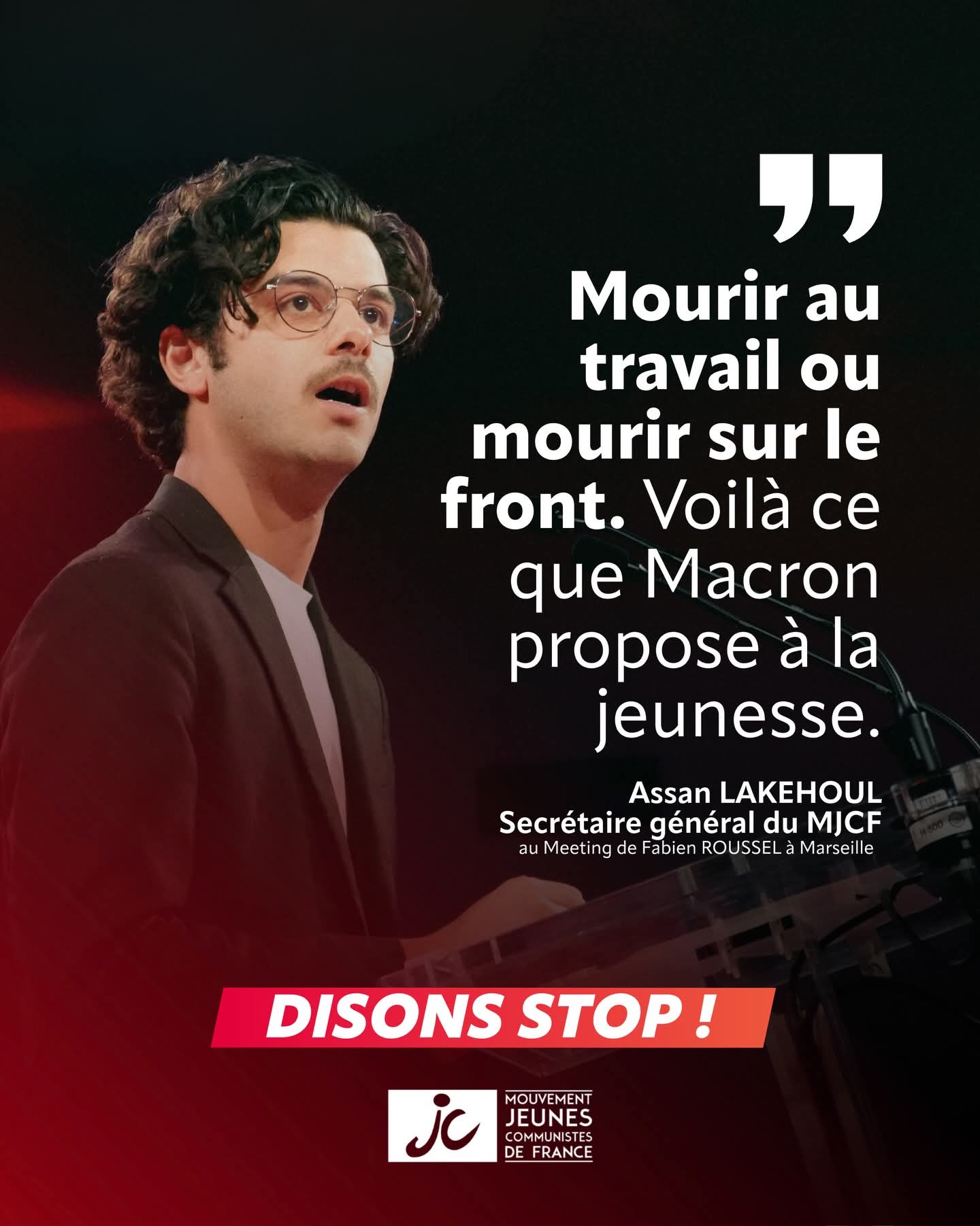 Voilà la réalité de l’impérialisme aujourd’hui. Mourir au travail ou mourir sur le front. C’est ça qu’Emmanuel Macron propose à la jeunesse. Eh bien c’est une honte !